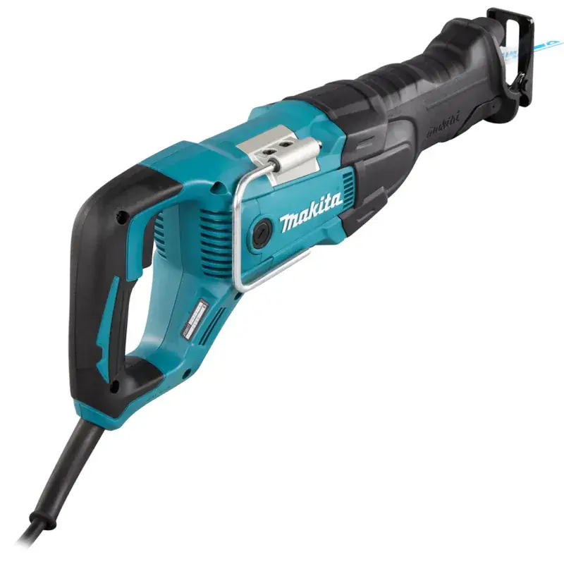 Сабельная пила Makita JR3061T используется для распила деревянных брусков, досок, металлических уголков, труб и других конструкций. Инструмент оснащен электродвигателем мощностью 1250 Вт и производит до 3000 об/мин. на холостом ходу. Глубина распила при этом достигает 255 мм по дереву и 130 мм по металлу.