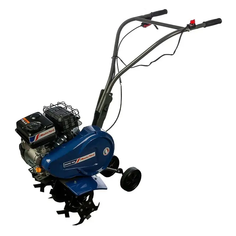 Бензиновый культиватор MasterYard NANO 40R - модель среднего класса. Благодаря своим компактным размерам его можно использовать в ограниченных пространствах (например, при обработке небольших грядок, клумб или междурядий). Мотокультиватор легко справляется с обработанной почвой на площадях до 500 кв.м.