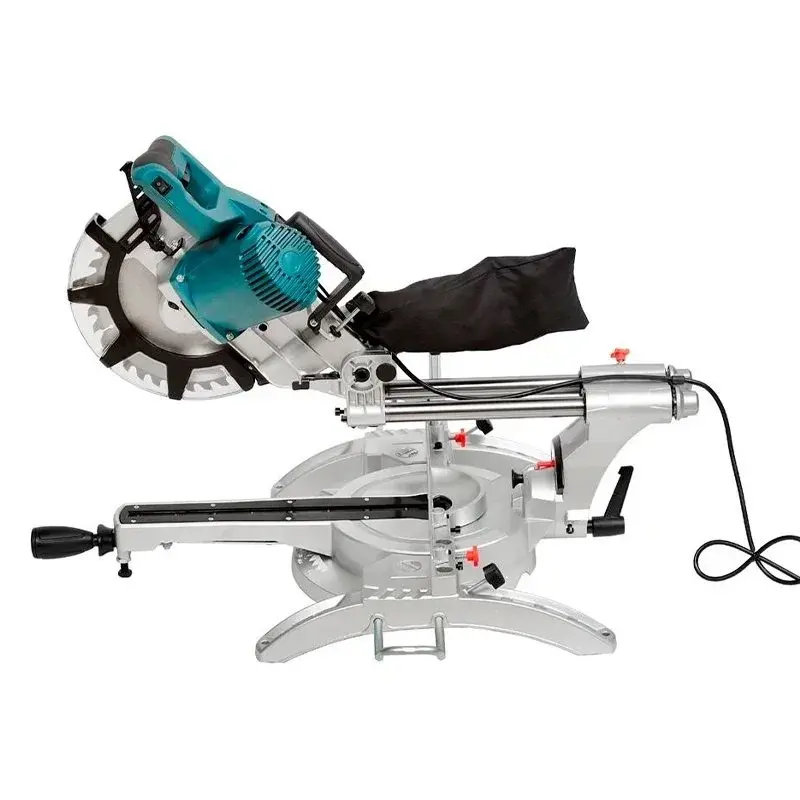 Все опилки и стружки, получающиеся во время работы, собираются в специальный мусорный мешок. Широкая направляющая рукоятка электроинструмента обеспечивает удобный захват при любом наклоне и повороте режущего диска. В комплекте предоставляется струбцина для надежной фиксации обрабатываемого материала.