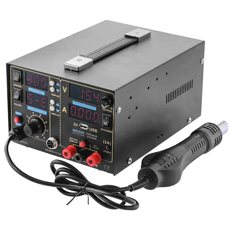 - 3 в 1- паяльник, термофен, двухканальный источник питания