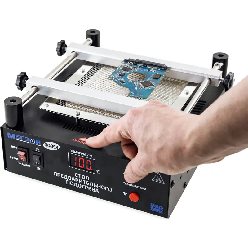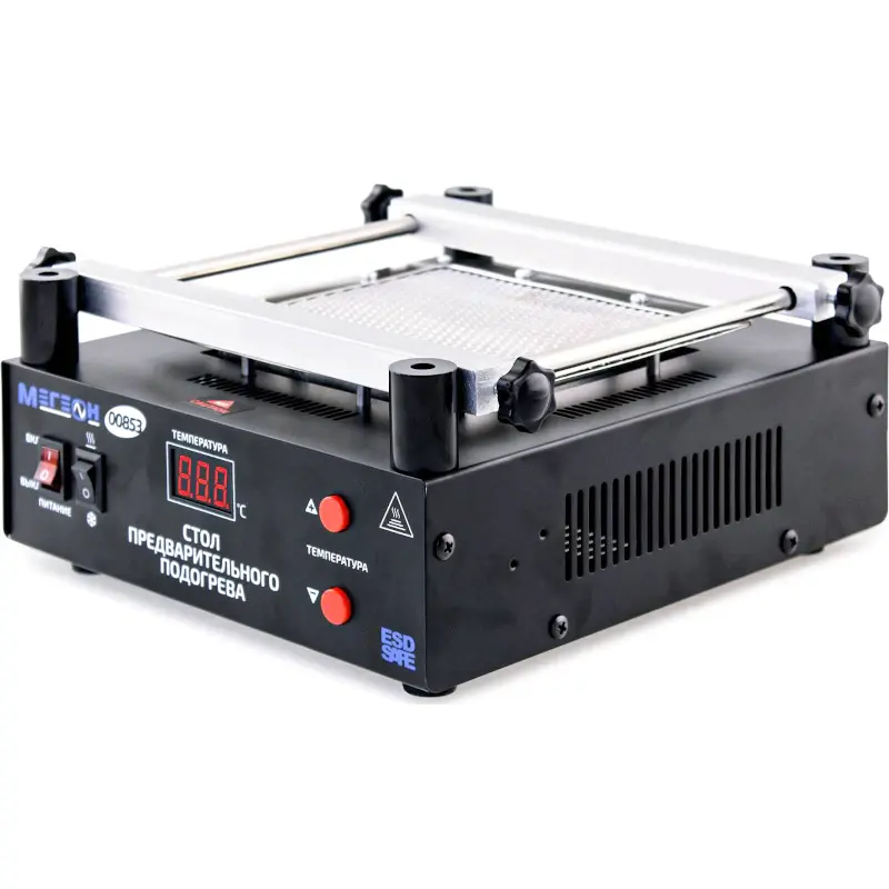 Стол предварительного нагрева МЕГЕОН 00853 предназначен для подогрева печатных плат во время ремонта и монтажа электрокомпонентов. Предварительный нагрев позволяет избежать термоудар и перегрев компонентов, а также значительно улучшает качество пайки и упрощает работу.