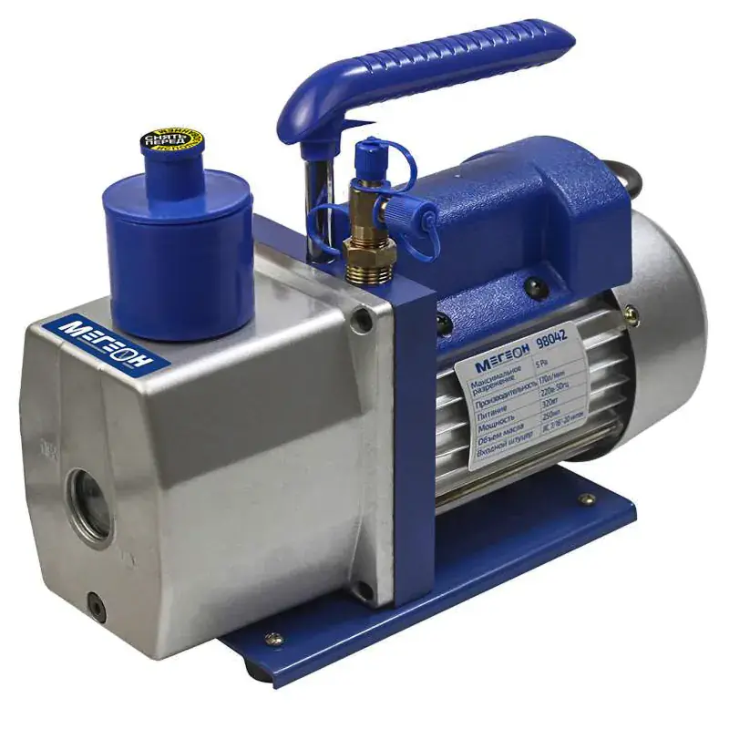 МЕГЕОН 98042 – это техническое средство представляющее собой электрический вакуумный двухступенчатый масляный насос, сочетающий в себе небольшие размеры, вес, высокую производительность и беспрецедентную надёжность. Удобная ручка для переноски, низкий уровень шума и невысокое энергопотребление делают его весьма привлекательным приобретением. Исключительные эксплуатационные характеристики достигаются благодаря новейшим разработкам, высококачественным материалам и изготовлению деталей на прецизионных станках. Он найдёт широкое применение при монтаже, наладке и ремонте бытового и торгового холодильного оборудования, домашних и автомобильных кондиционеров, в исследовательской деятельности и промышленном использовании, где необходимо откачать воздух до абсолютного значения 0,3 паскаля.