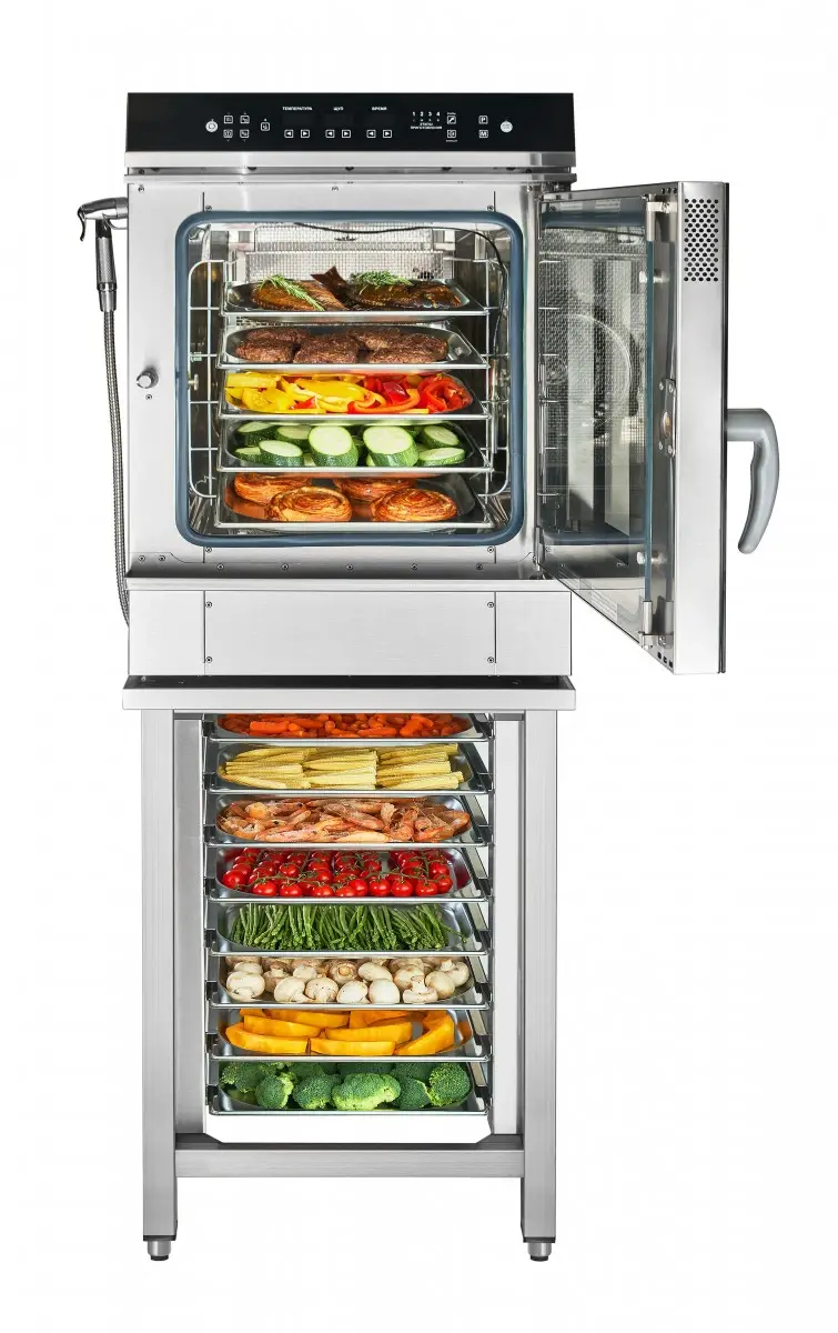 - пять разнотемпературных рабочих режимов — конвекция, конвекция + паровая обработка, паровой разогрев, низкотемпературный пар, пар;