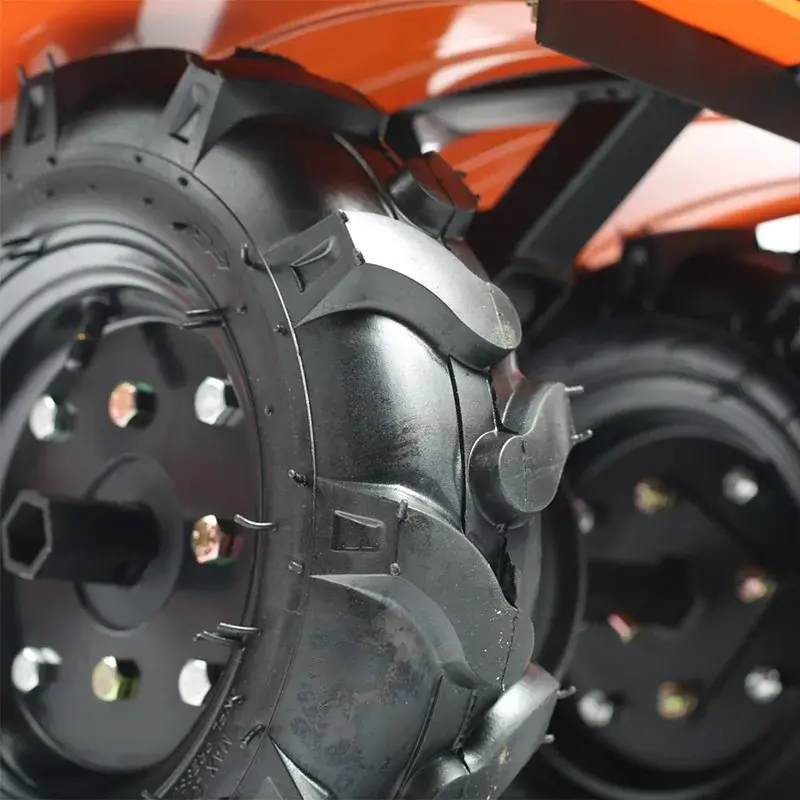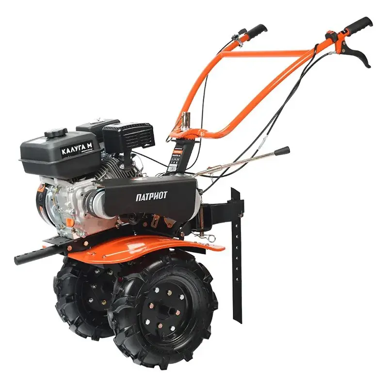 Мотокультиватор Patriot Калуга М оснащен большими колесами тракторного типа. Рельефный рисунок обеспечивает хорошее сцепление с поверхностью и легкое прохождение по песку или рыхлой земле.