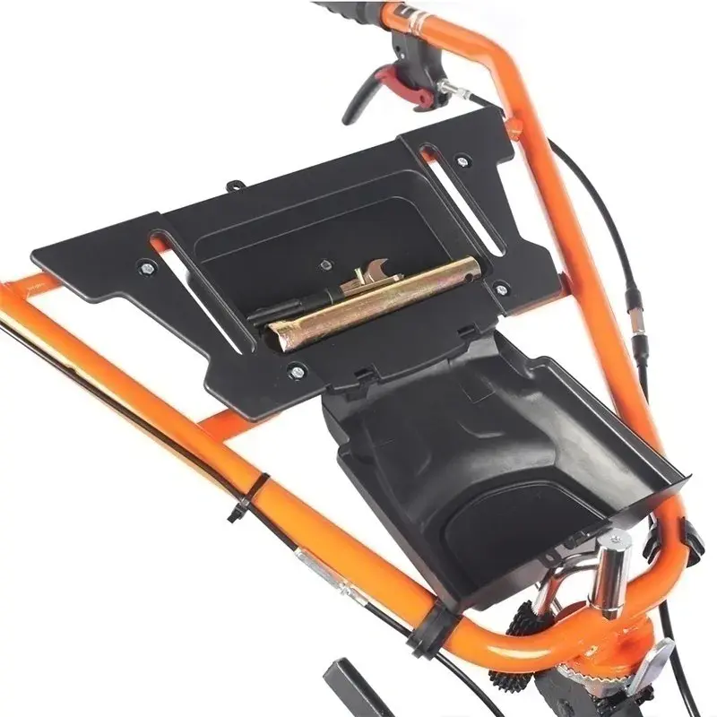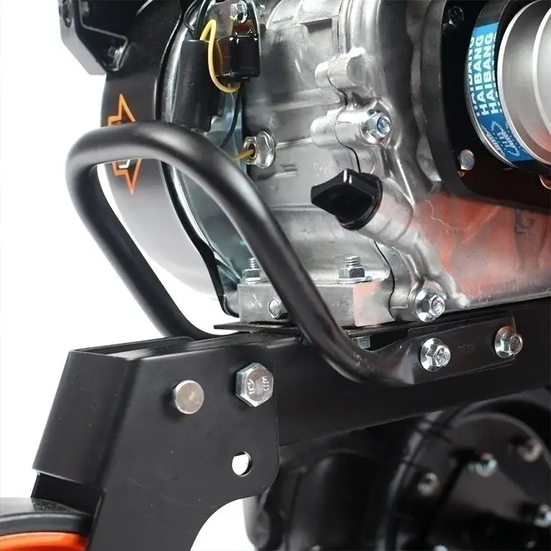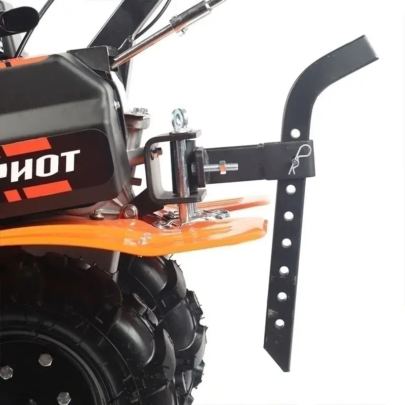- Прочный передний бампер надежно защищает мотоблок от повреждений.