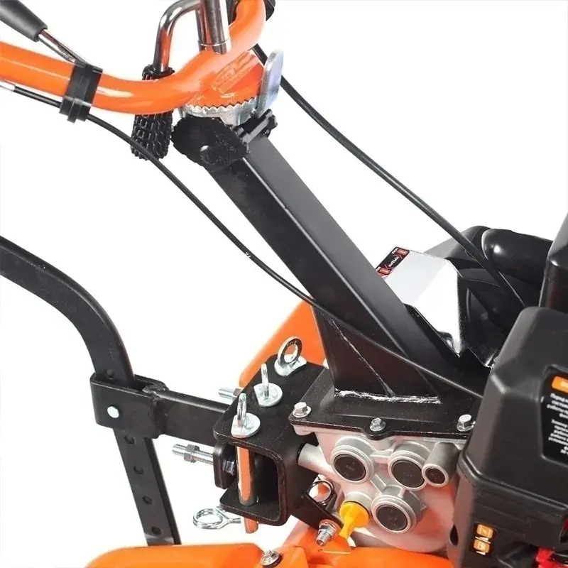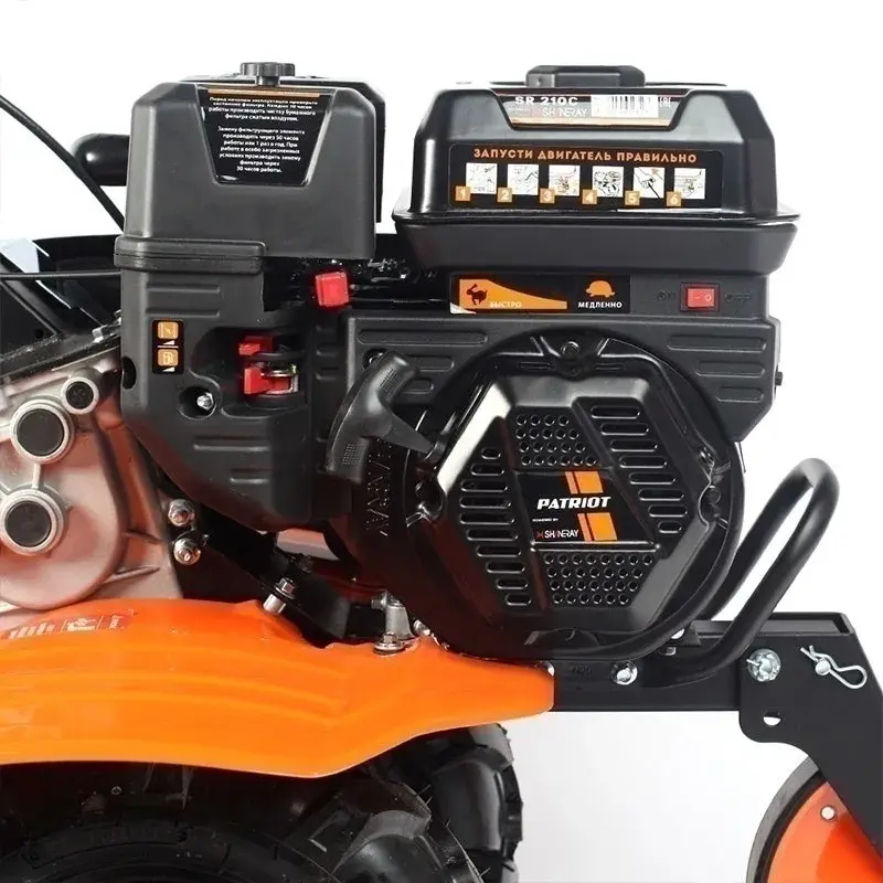 Руль у модели имеет регулировки по высоте и по плоскости. Это позволяет подобрать оптимальные настройки под ваш рост и конкретную задачу. Например, чтобы пользоваться культиватором Patriot Победа вдоль ограждения. Резиновые накладки на рукояти управления способствуют точному контролю при работе.