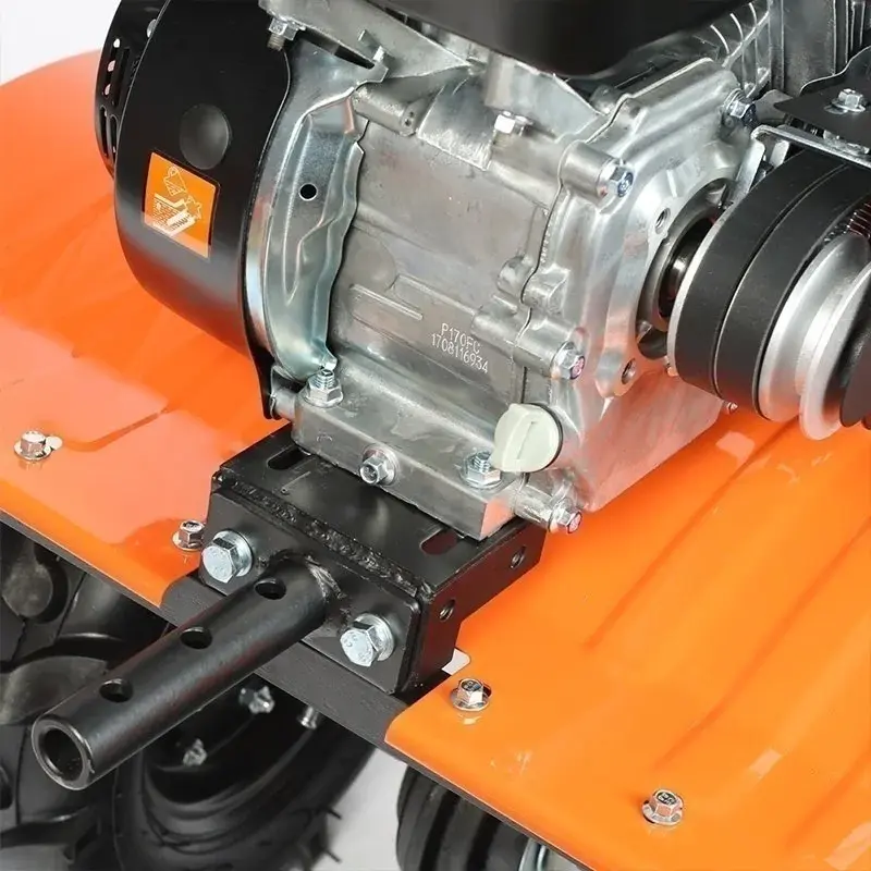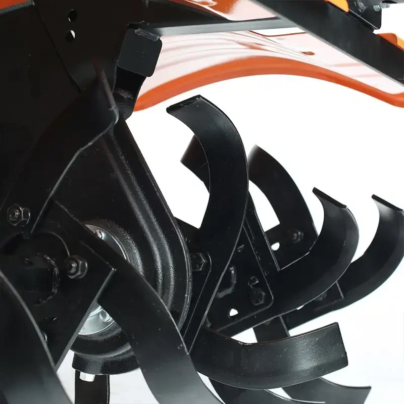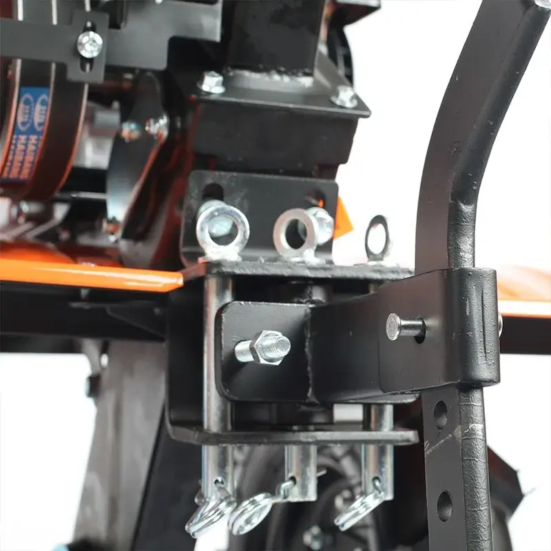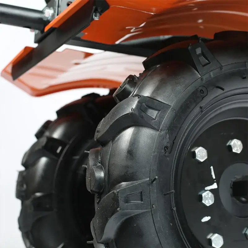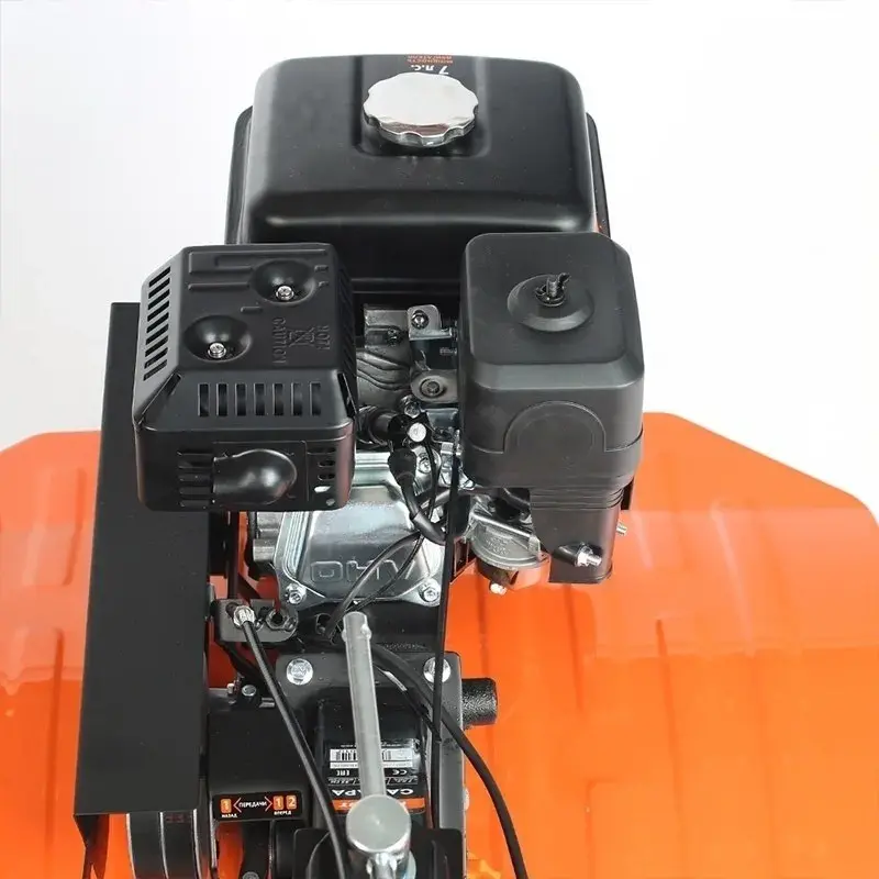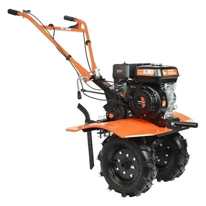 Мощный мотоблок с большой шириной захвата и чугунным редуктором, укомплектован закаленными фрезами, что позволяет применять его на тяжелых грунтах и для обработки целины. Наличие в комплекте пневматических колес позволяет использовать совместно с тележкой. Есть возможность установки косилки.