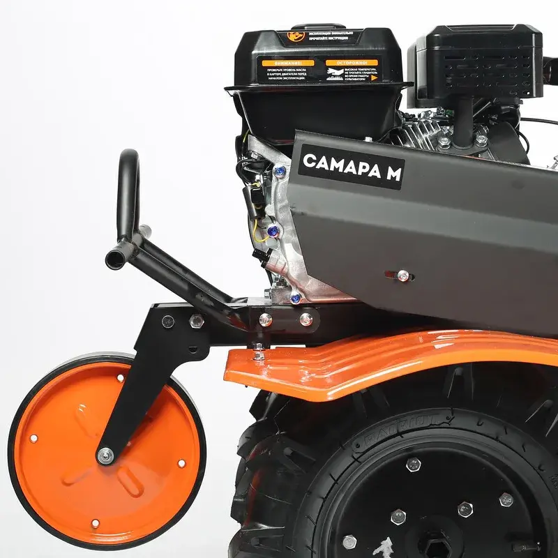 Отдельно можете приобрести и установить роторную косилку, шнекороторный снегоотбрасыватель, тележку, плуг, окучник, картофелевыкапыватель, а если установить гусеничную приставку, то получится мотобуксировщик для движения по глубокому снегу и бездорожью.