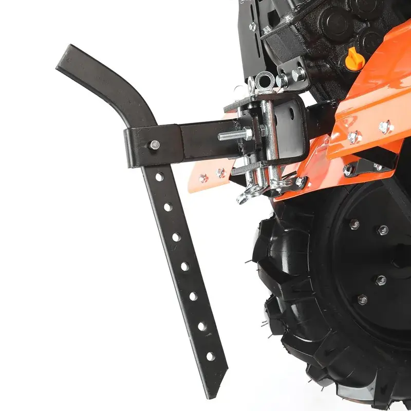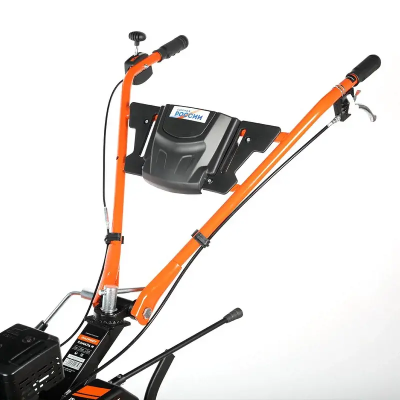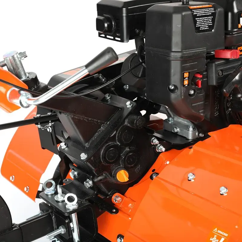 Отдельно можете приобрести и установить роторную косилку, шнекороторный снегоотбрасыватель, тележку, плуг, окучник, картофелевыкапыватель, а если установить гусеничную приставку, то получится мотобуксировщик для движения по глубокому снегу и бездорожью. Высокое крыло.