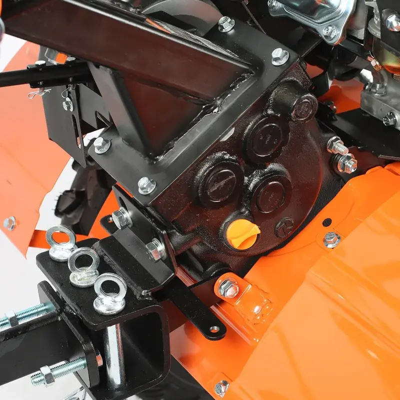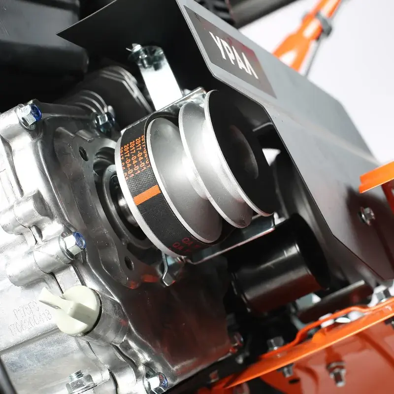 - Уже установленный на мотоблок трехручейковый шкив дает возможность подключать косилку и снегоуборщик, а мощный прицепной узел является самым распространенным в России и дает возможность устанавливать различное навесное оборудование, включая тележку.