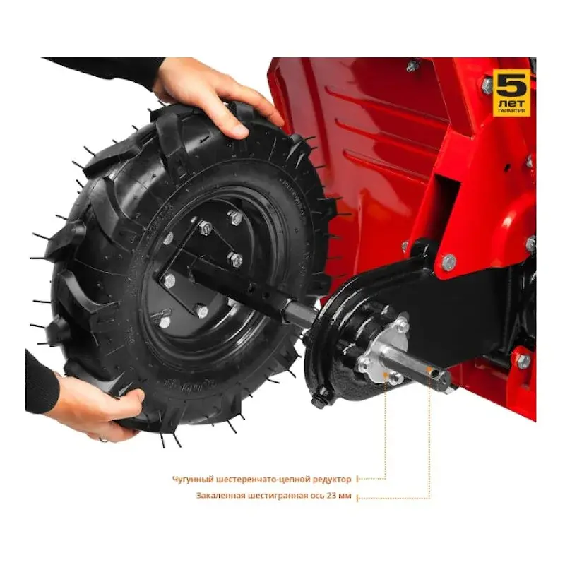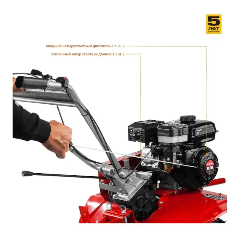 Мотоблок бензиновый приводится в движение 4-тактным двигателем, который гарантирует высокую производительность даже под постоянными высокими нагрузками.