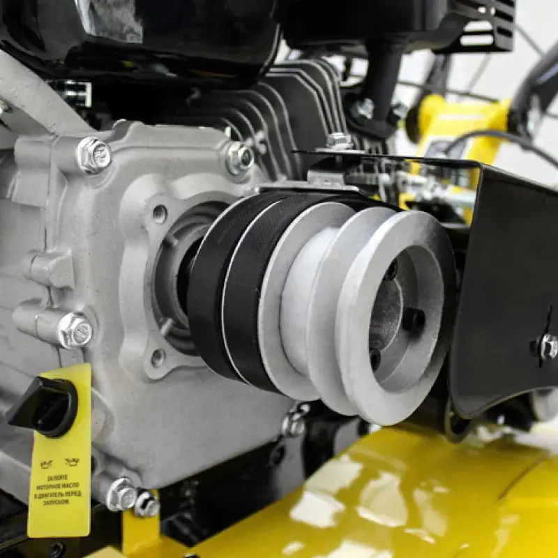 Самоходный мотоблок легко перемещается по участку. На выбор есть несколько скоростей: 2 вперед и 1 назад. Задний ход значительно облегчает разворачивание на узких дорожках, а также парковку. Это также облегчает извлечение фрез, если они застряли в земле во время вспашки. Благодаря передачам не придется прикладывать физических усилий во время работы.