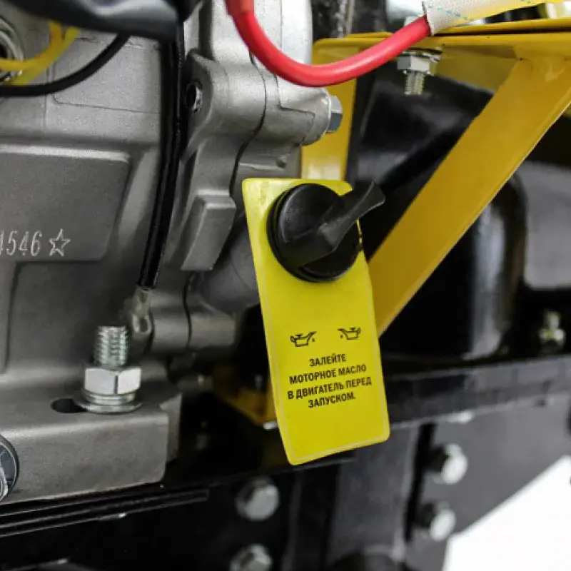 В агрегате предусмотрена система защиты, которая срабатывает при недостаточном уровне масла в баке. При малом количестве смазки произойдет автоматическая остановка двигателя, не допускающая его преждевременной поломки.