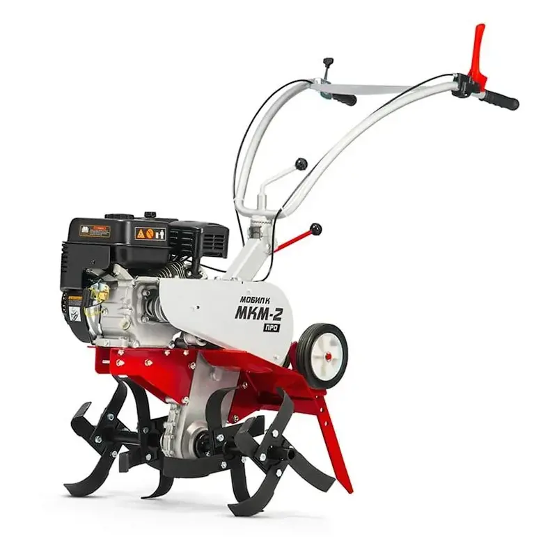 Мотоблок Мобил К МКМ-2 ПРО используется для рыхления почвы с помощью фрез, а при установке дополнительного навесного оборудования может также выкапывать корнеплоды, убирать снег, подметать мусор или перевозить грузы. Данная модель оснащена бензиновым двигателем мощностью 6,5 л.с., имеет две скорости вперед и одну назад.