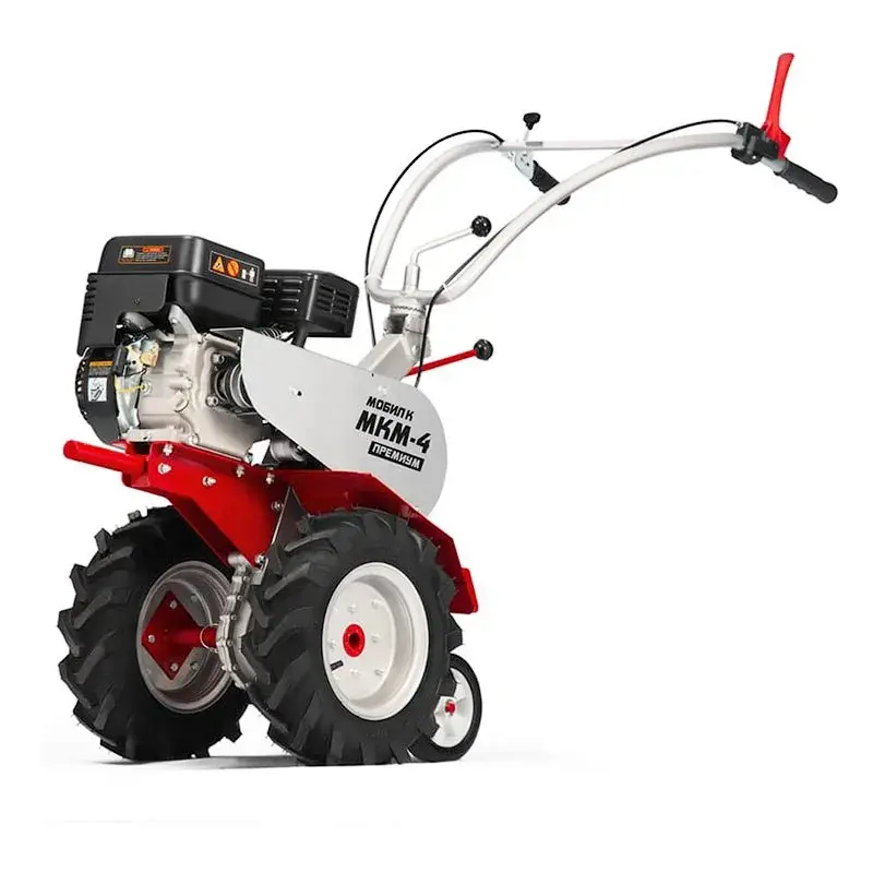 Бензиновый мотоблок Мобил К МКМ-4 ПРЕМИУМ - профессиональная модель с 4-тактным бензиновым двигателем Yamaha MX200 мощностью 6,5 л.с. Культиватор может обрабатывать территорию площадью до 5500 м2. Он способен работать как с фрезами, идущими в комплекте, так и с дополнительным навесным оборудованием.