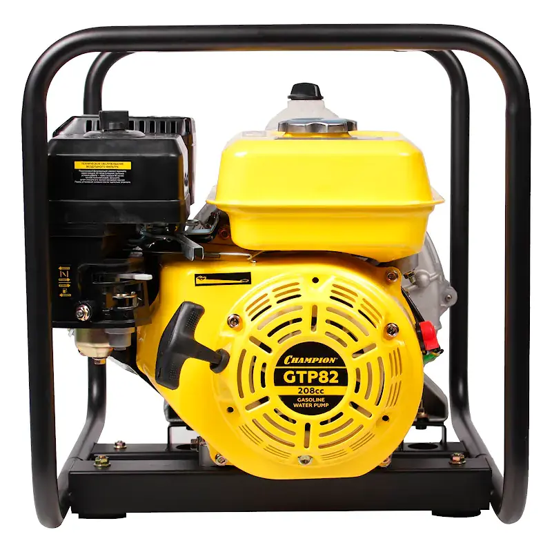 Помпа Champion GTP82 оборудована широким металлическим каркасом с каждой стороны. С помощью такой технологии машина устоит практически на любой поверхности – от твердой плитки до рыхлой местности.
