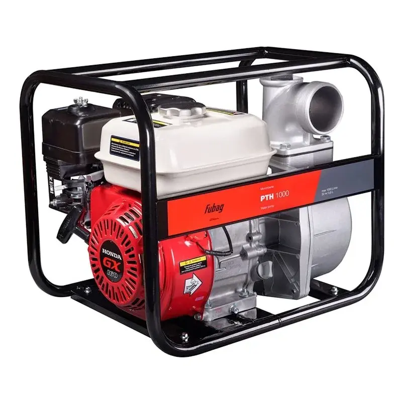 Запуск мотопомпы Fubag PTH 1000 осуществляется с помощью ручного стартера. В качестве топлива используется бензин АИ-92. Рамная конструкция обеспечивает устойчивость насоса даже на неровной поверхности, защищает внутренние элементы от повреждений при перевозке, удобна для транспортировки.