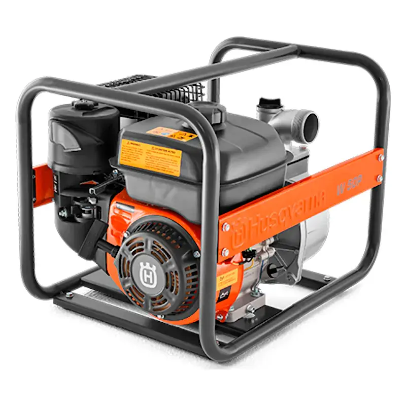 Мотопомпа Husqvarna W50P оснащена 4-тактным бензиновым двигателем мощностью 5,7 л.с., который заводится с помощью ручного стартера. Насос способен нагнетать воду на высоту до 28 м, забирая ее с глубины до 7 м. Скорость потока достигает 466 л/мин. Устройство используется для перекачки чистой или слабозагрязненной воды в хозяйственных и промышленных целях. Топливный бак емкостью 3,6 л обеспечивает продолжительную непрерывную работу на одной заправке.