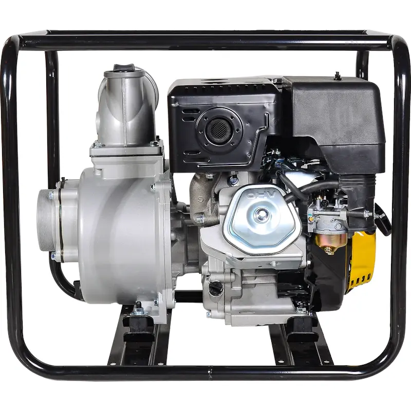 Опорная рама из прочной стальной трубы обеспечивает устойчивое положение бензиновой мотопомпы и служит защитой от внешних воздействий. Амортизирующие элементы снижают вибрации. Четырехтактный двигатель мощностью 13 л.с. без проблем заводится с помощью ручного стартера в любых погодных условиях. Эта модель является самой мощной в линейке мотопомп Huter.