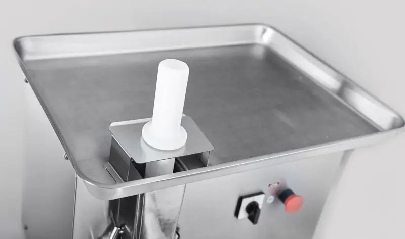 • Корпус, шнек, зажимная гайка, лоток и облицовка изготовлены из высококачественной нержавеющей стали.