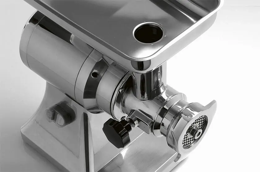 Мясорубка данной модели характеризуется высокой прочностью комплектующих и отличным внешним видом. Загрузочное устройство мясорубки соответствует всем требованиям безопасности. Антикоррозийная облицовка из нержавеющей стали защищает от появления ржавчины на поверхностях мясорубки. Оптимальная конструкция мясорубки делает возможным ее использование в небольших помещениях, где площадь рабочего места ограничена.