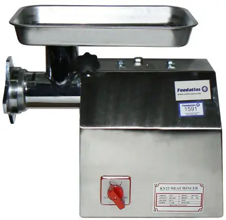 Мясорубка Foodatlas KY-22A с системой ножей Enterprise используется на предприятиях общественного питания и торговли для измельчения кускового жилованного мяса и рыбы при производстве фарша для различных мясных и рыбных блюд.
