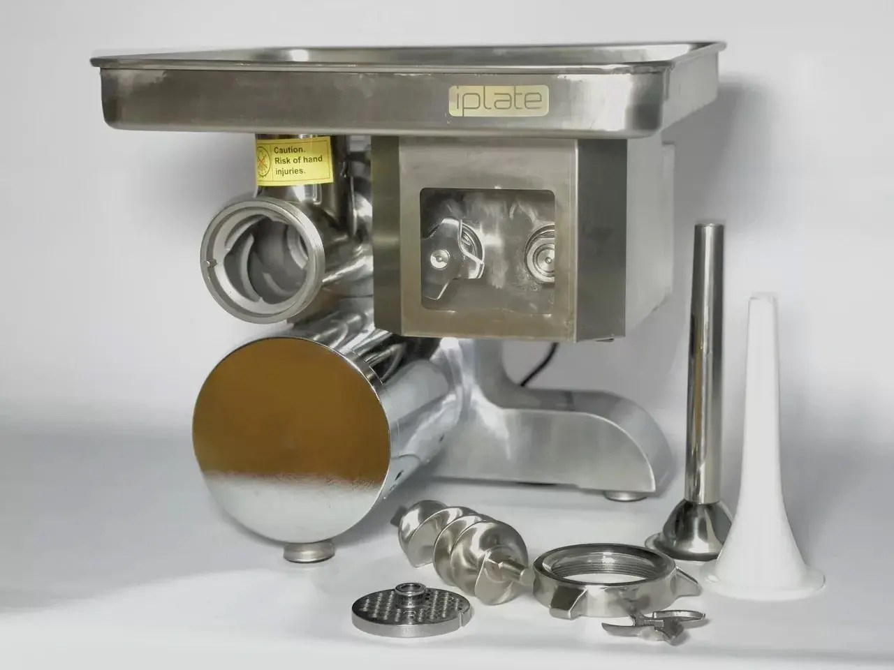 Мясорубка iPlate FARSHEDELKA-MGSL22 — высококачественное оборудование, применяемое в ресторанах, барах, кафе, пиццериях, для измельчения мяса, птицы, рыбы, овощи, так же есть возможность сделать колбасы.