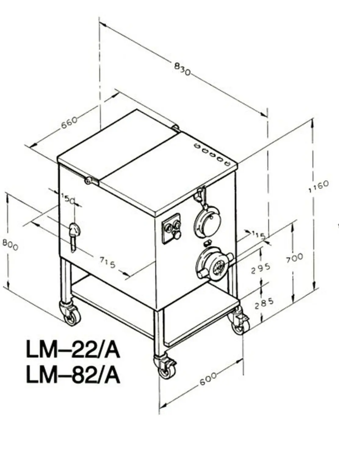 Автоматический волчок Koneteollisuus LM-82/A с системой ножей Unger (чугунный корпус, шнек из алюминия, педаль) предназначен для для измельчения мяса и получения фарша, купат и колбасок.