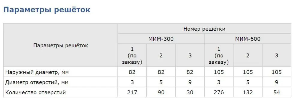 *Практическая производительность мясорубки зависит от скорости подачи оператором порезанного кусочками продукта к шнеку, сортности перерабатываемого мяса, качества заточки инструмента