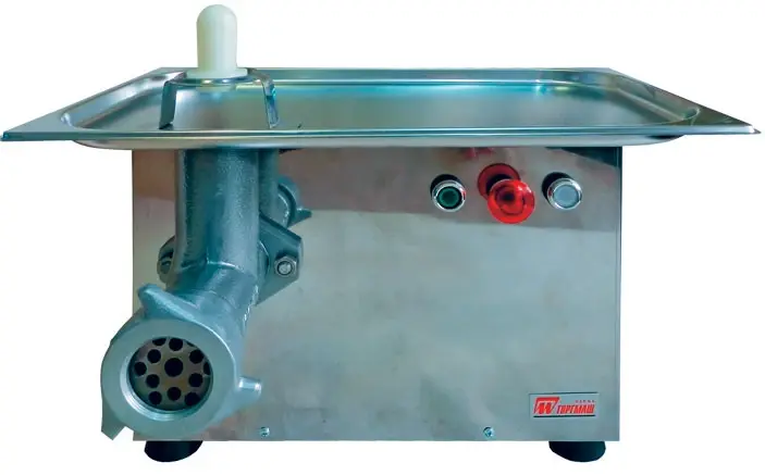 Мясорубка Торгмаш Пермь M-80Ч с системой ножей Unger предназначена для измельчения мяса и рыбы на фарш и набивки колбас (купатов) на предприятиях общественного питания (столовые, кафе, рестораны), в малых колбасных цехах и фермерских хозяйствах.