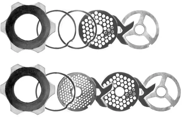 Практическая производительность мясорубки зависит от скорости подачи оператором порезанного кусочками продукта к шнеку, сортности перерабатываемого мяса и качества заточки инструмента.