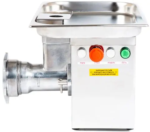 Деформация агрегата исключена ввиду использования при его изготовления надёжного материала – массивной нержавеющей стали. Руки персонала защищены предохранителем, который блокирует свободный доступ к вращающемуся шнеку.