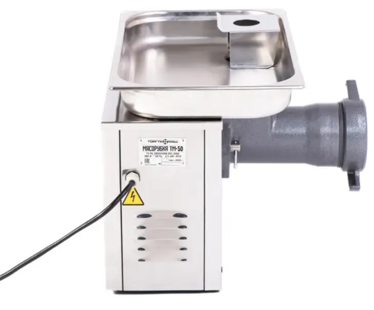 Мясорубка Торгтехмаш ТМ-50 с системой ножей Unger предназначена для измельчения мяса и рыбы на фарш, повторного измельчения котлетной массы и набивки колбас на предприятиях общественного питания.
