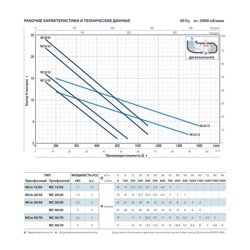 Электронасосы МС оснащены одноканальным рабочим колесом, заключенным в просторную кольцевую камеру, защищенную корпусом насоса и основанием, которое имеет обработанную поверхность, всасывающий патрубок, установленный в основании насоса, непосредственно соприкасается с накачиваемой жидкостью.