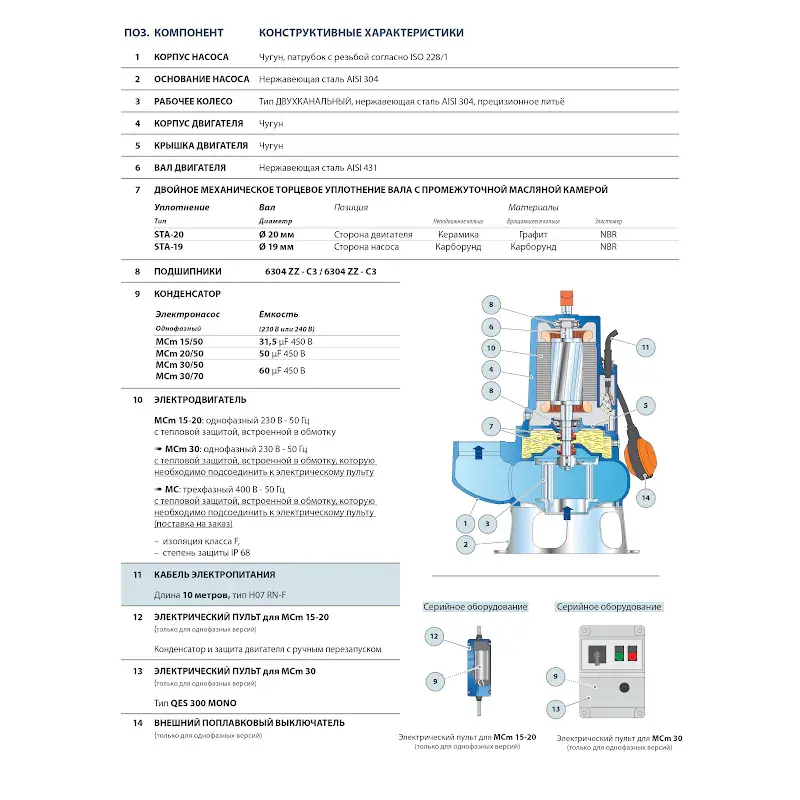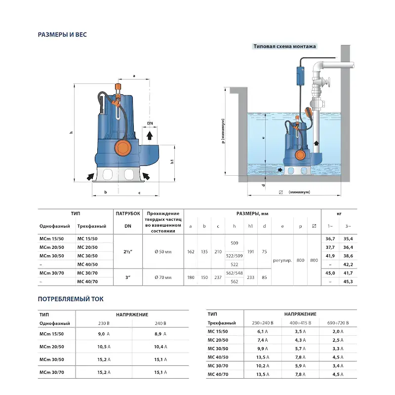 Одноканальные погружные электронасосы серии МС разработаны для откачки загрязненных и сточных вод, как в бытовой, так и в промышленной области.