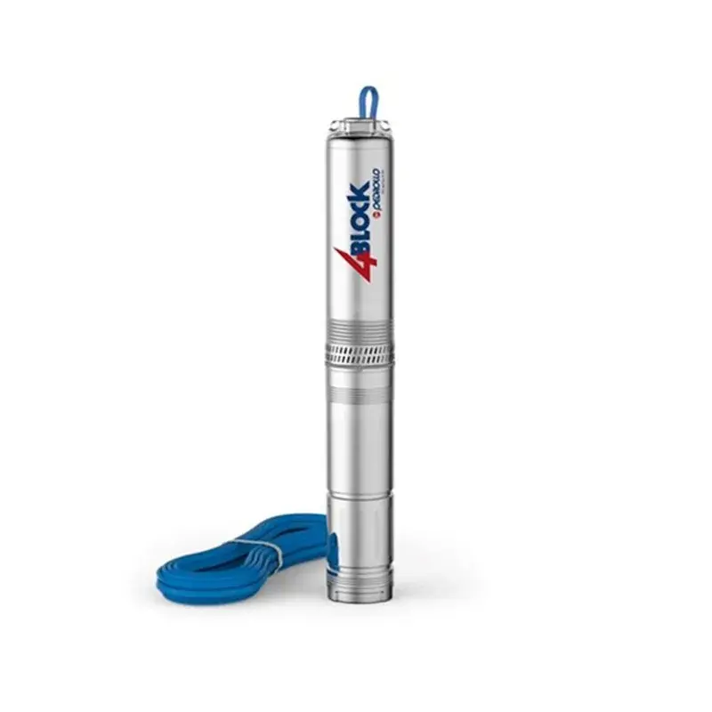 Фирма PEDROLLO предлагает на рынке электронасосов для 4-дюймовых скважин модель 4BLOCK, которая является одним из лидеров рынка по эксплуатационным характеристикам и в частности по стойкости к песку, которая гарантируется до 150 г/м3. Электронасос предназначен для эксплуатации в быту для подъема воды с содержанием песка до 150 г/м3. Моноблочный скважинный 4-дюймовый электронасос создан в качестве нового, более экономичного и надежного изделия. Насос поставляются в комплекте с конденсатором внутри двигателя и кабелем электропитания длиной 20 м, что облегчает и упрощает установку.