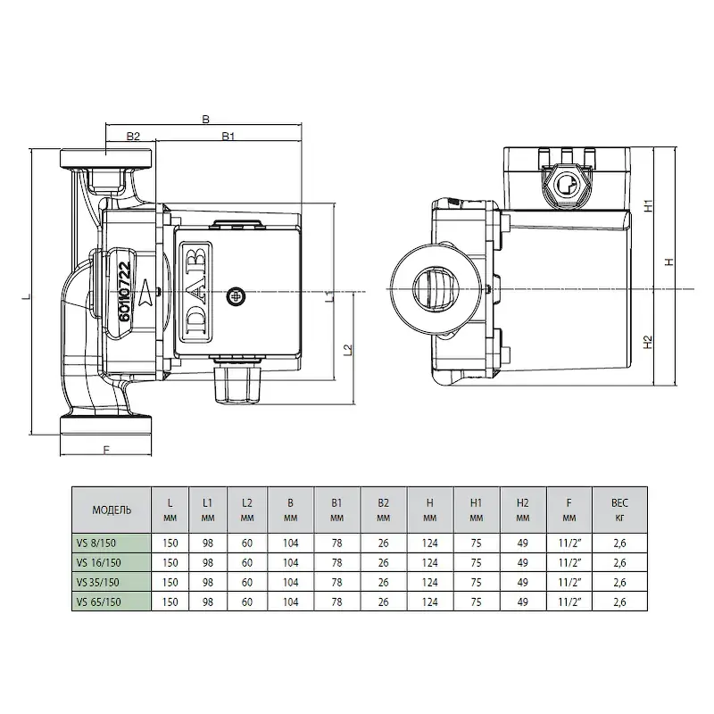Насос DAB VS 65/150 — аппарат циркуляционного типа, предназначение которого обеспечивать обращение санитарной воды (или химического теплоносителя) по замкнутому контуру. Подходит для использования в системах рециркуляции ГВС. Также возможна эксплуатация в системах отопления и теплых полов.