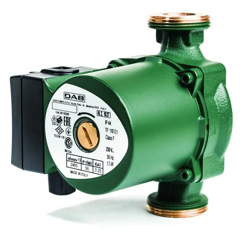 ЦИРКУЛЯЦИОННЫЙ НАСОС С МОКРЫМ РОТОРОМ Назначение. Разработано специально для систем горячего водоснабжения с линией рециркуляции. Рабочий диапазон. Производительность: от 0,6 до 3,7 куб.м./ч, напор: до 6 м. водяного столба. Максимальное рабочее давление: 10 бар. Перекачиваемая жидкость. Состав: чистая, без твердых включений и минеральных масел, не вязкая, химически нейтральная, по характеристикам аналогичная воде. Температура: для санитарной воды от +5°С до +85°С, для прочих применений от –10°С до +110°С. Основные материалы. Гидравлический корпус – бронза, рабочее колесо – технополимер, ротор – керамика, уплотнение – EPDM. Особенности. Подшипники двигателя смазываются перекачиваемой жидкостью. Двигатель не требует дополнительной защиты от перегрузки. Монтаж. Вал двигателя строго в горизонтальном положении. Стандартное электропитание: 1x230 В. Степень защиты: IP 44. Класс изоляции: F.