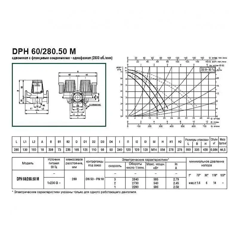Корпус насоса выполнен из чугуна. Рабочее колесо двигателя сделано из высокопрочного технополимера. Прибор имеет двухполюсный асинхронный двигатель с тремя скоростями вращения. Вал двигателя размещен на графитовых подшипниках, смазываемых перекачиваемой жидкостью. Данный насос является сдвоенным, что позволяет попеременно использовать один из насосов или в случае необходимости задействовать оба насоса. В этой модели встроен обратный клапан. При поломке одного насоса автоматически задействуется другой.