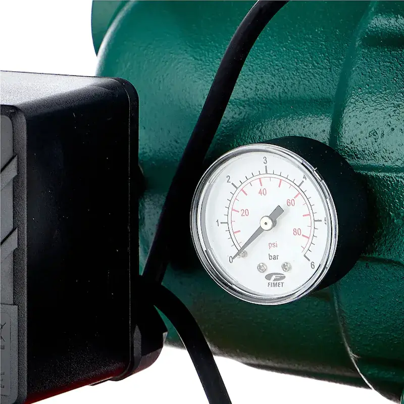 - Оснащена манометром, реле давления для автоматического режима работы.