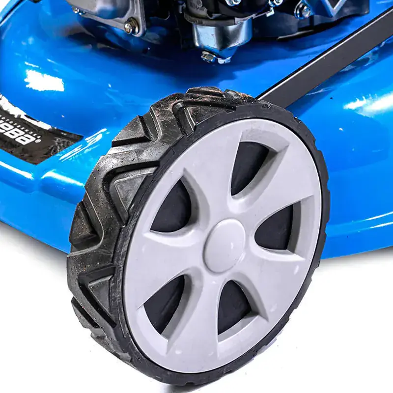 Задние колеса больше в диаметре, по сравнению с передними. Это облегчает прохождение газонокосилки по участку с неровностями или небольшими ямами. Управление упрощает и самоходный тип перемещения. Вам не придется толкать газонокосилку по участку самостоятельно, достаточно задавать направление движения с помощью держателя.