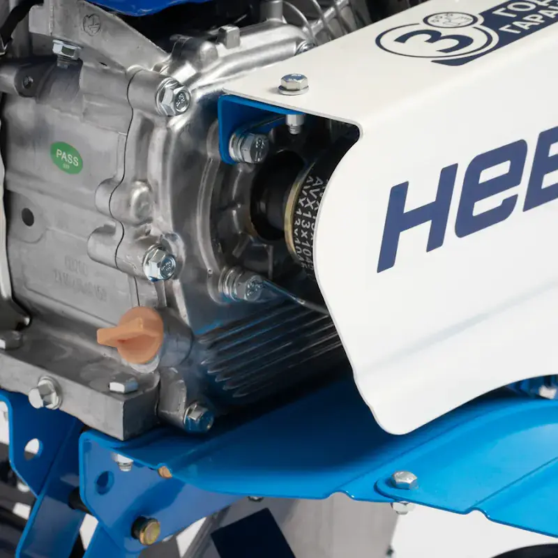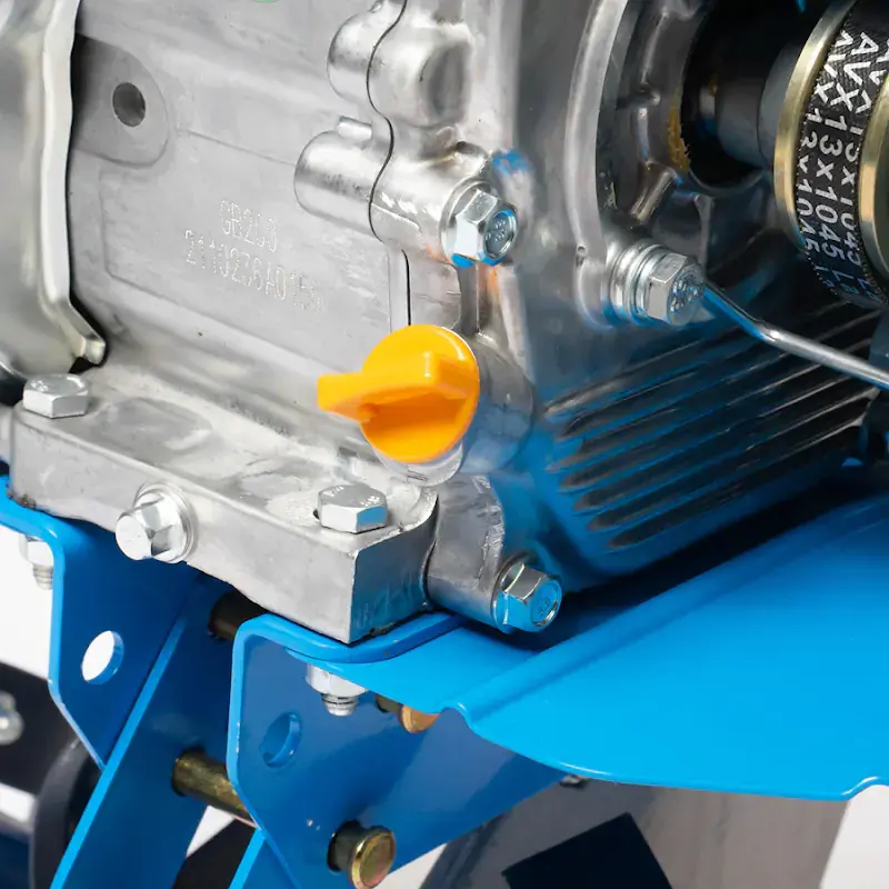 Бензиновый культиватор оснащен клиноременным сцеплением и коробкой передач, поддерживающей одну скорость переднего и одну заднего хода. Ограничитель глубины культивации можно установить на различной высоте в зависимости от типа обрабатываемой почвы. Правильно сбалансированный корпус обеспечивает устойчивое положение машины и ее поступательное перемещение без заваливания на бок. Металлические крылья прикрывают вращающиеся фрезы в целях безопасности и защиты от вылетающих комьев почвы. Благодаря экономичному двигателю объема топливного бака хватает на продолжительную работу без дозаправки.