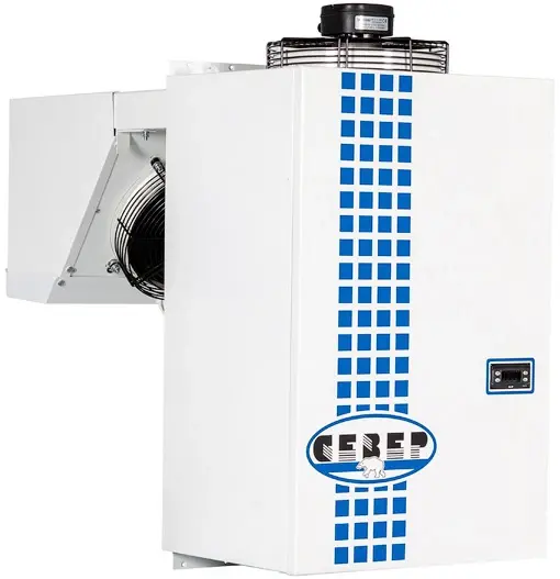 Моноблок выполнен в виде единого блока, воздухоохладитель (испаритель) устанавливается во внутренний объем холодильной камеры. Доставляется в заправленном виде, полностью готовым к эксплуатации.