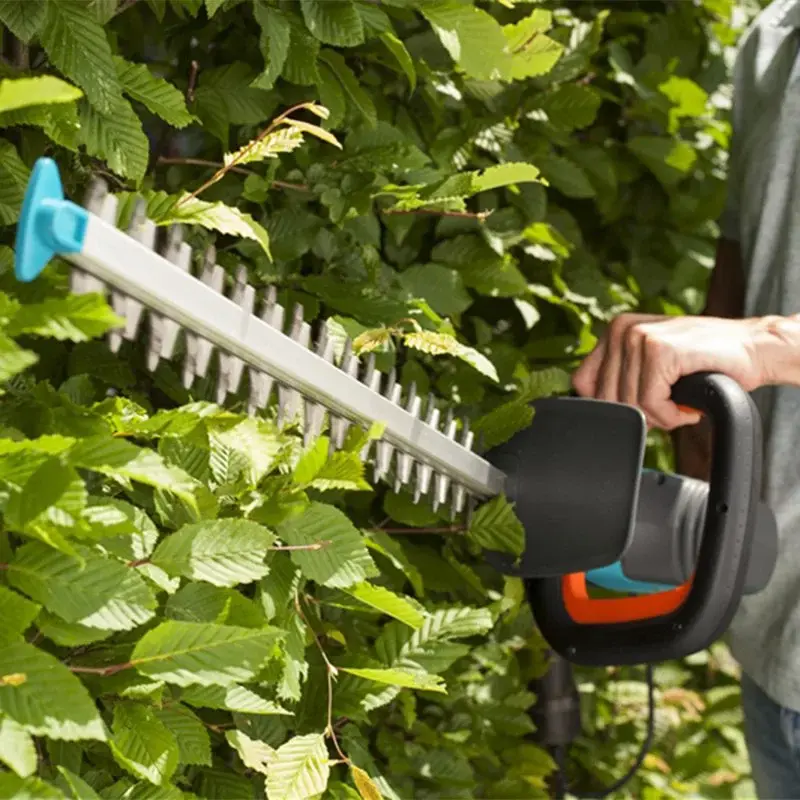 Легкие и мощные электрические ножницы для живой изгороди Gardena ComfortCut 600/55 прекрасно подходят для удобной стрижки живых изгородей средних и больших размеров. Благодаря рукоятке ErgoLine ножницы удобно лежат в руке. Большая кнопка запуска позволяет легко и безопасно включить инструмент в любой ситуации. Лазерная заточка ножа гарантирует эффективную, быструю и чистую обрезку. Кроме того, она обеспечивает плавность работы при низком уровне вибрации и дает возможность прилагать меньше усилий.