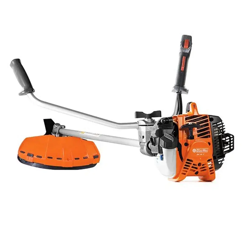 Мотокоса Oleo-Mac BC 24 T мощностью 0,9 кВт поставляется в комплекте с леской для стрижки травы, а также с 3-лопастным ножом для реза кустарников. Для удобного ношения бензинового триммера предусмотрен наплечный ремень.