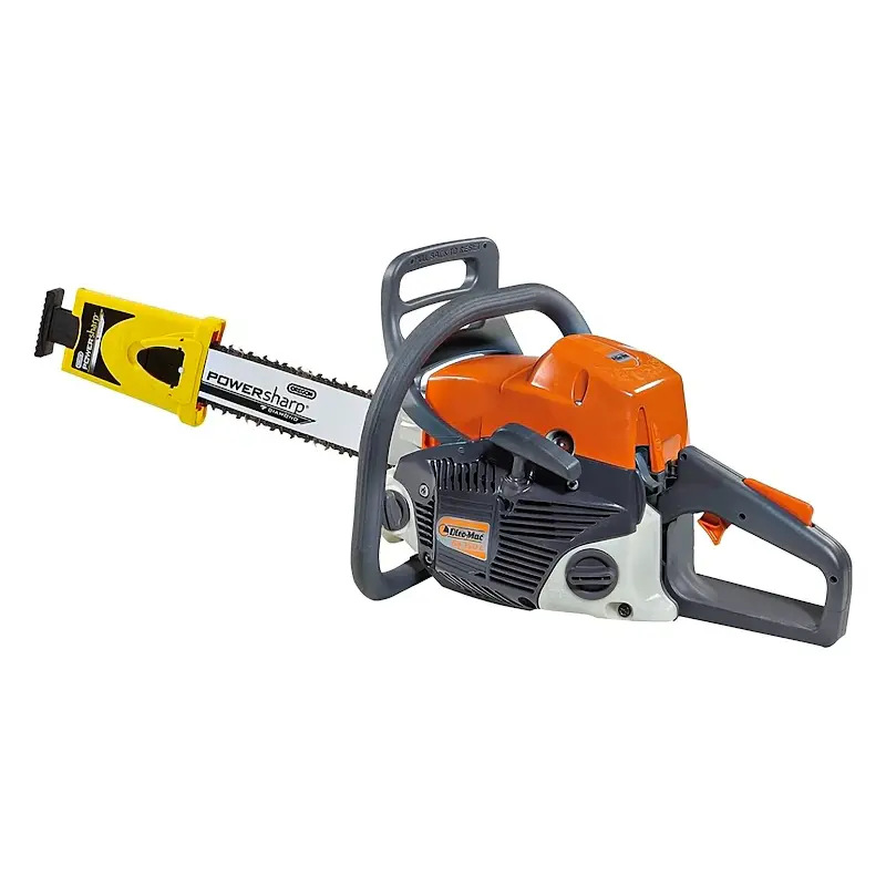 Бензопила Oleo-Mac GSH 40-14 PowerSharp – инструмент для заготовки дров для бани, распила бруса, обрезки сучьев и валки небольших деревьев. Поставляется в комплекте с пильной шиной PowerSharp длиной 35 см, а также с заточным приспособлением. Компактная модель проста в управлении, предотвращает возникновение отдачи и обладает малым весом.