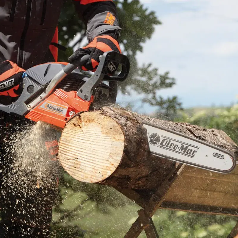 Бензопила Oleo-Mac GSH 51 оснащена двигателем мощностью 3 л.с. и совместима с шинами длиной 18 ". Инструмент подходит для валки небольших деревьев, распиловки бруса и заготовки дров на зиму. Автоматический маслонасос, боковой натяжитель цепи и подкачка топлива существенно упрощают работу.