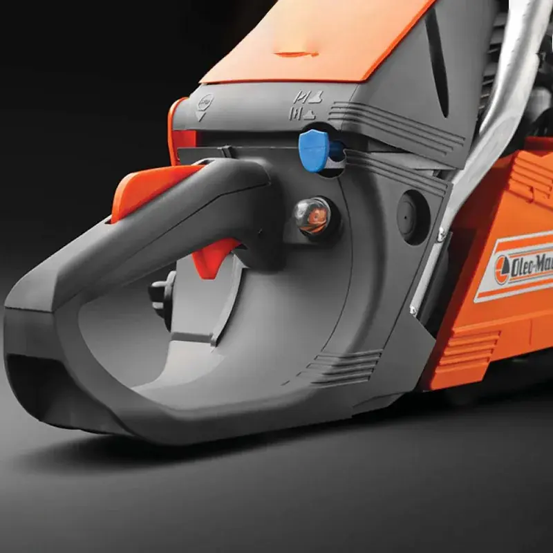 Боковое натяжение цепи позволяет подтянуть острую оснастку в пару движений. При этом вам не придется напрямую контактировать с цепью, что исключает травмоопасные ситуации. Крышка воздушного фильтра крепится на защелки. Это обеспечивает быстрый доступ к внутренним узлам для максимально простого обслуживания цепной бензиновой пилы Oleo-Mac GSH 51.