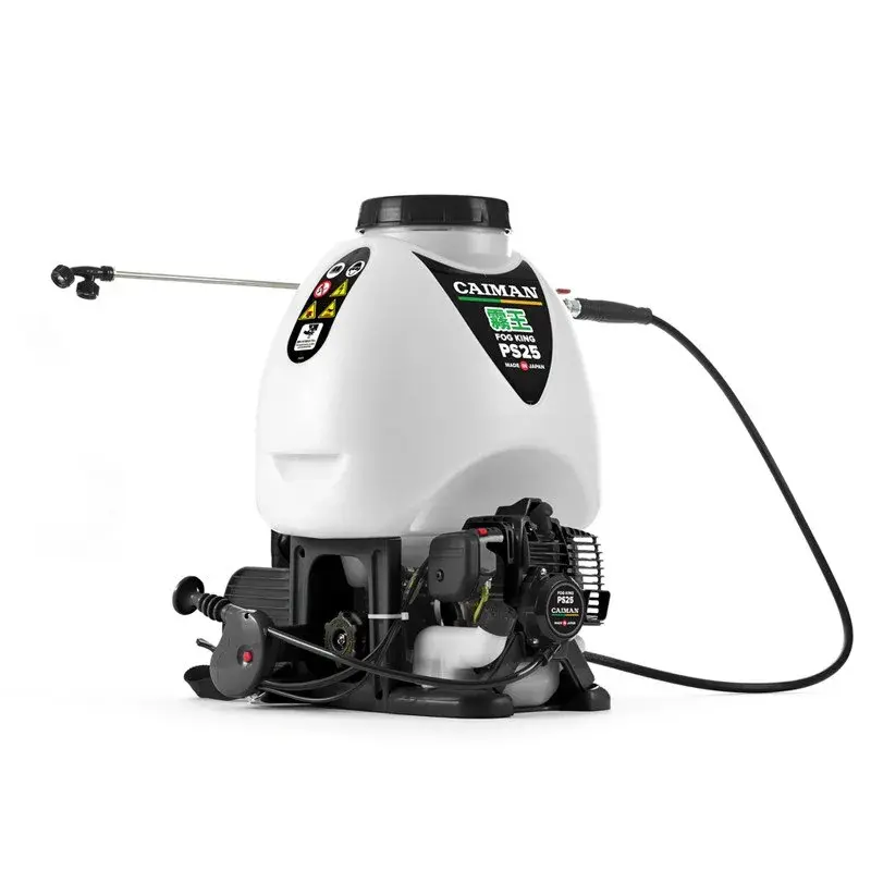 Профессиональный ранцевый бензиновый опрыскиватель Caiman Fog King PS25 с высоким напором используется для борьбы с вредителями, внесения химикатов на сельхозкультуры: овощи, кустарники, плодовые деревья высотой до 5 м.