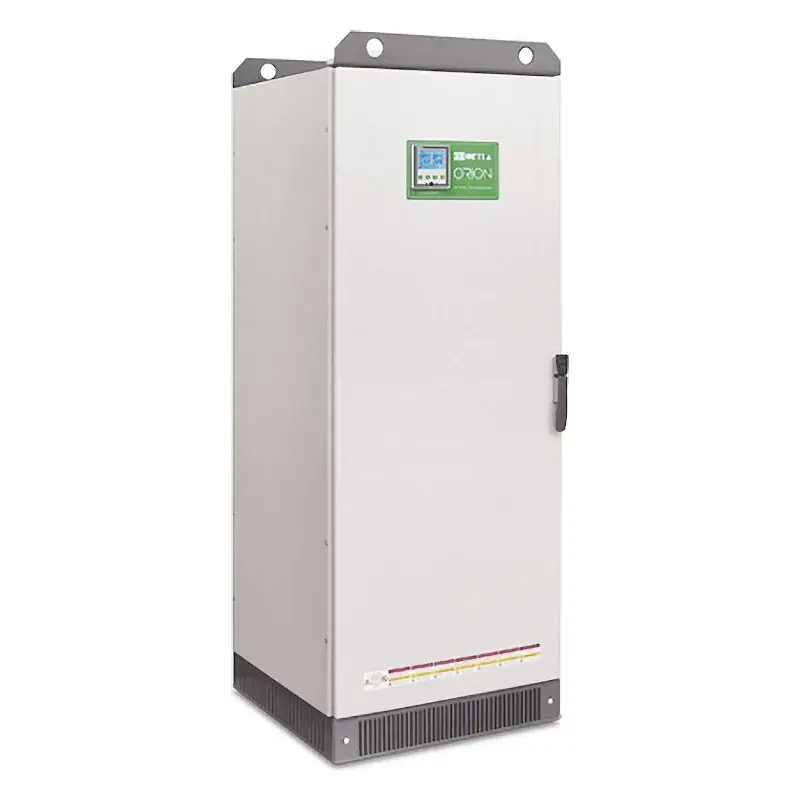 Стабилизатор напряжения ORTEA Orion 135 рассчитан на максимальную мощность нагрузки 135 кВа. Модель поддерживает регулировку параметров электросети в 2 диапазонах ± 15 и ± 20 %, обладает системой защиты и выдерживает многократные перегрузки.